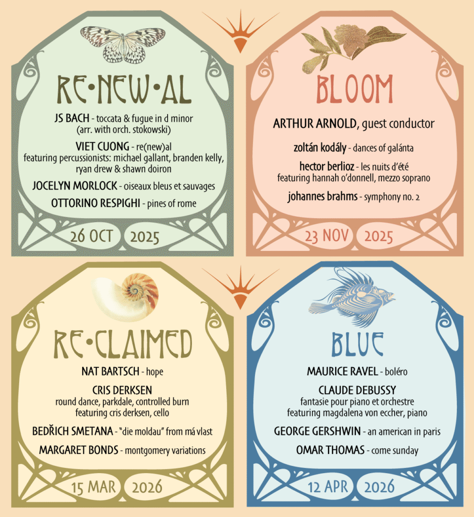 Bach’s legendary Toccata and Fugue in D minor appears in a vivid orchestration by Stokowski, while Jocelyn Morlock’s bird-inspired Oiseaux bleus et sauvages and Respighi’s cinematic Pines of Rome round out this dynamic, nature-infused program.